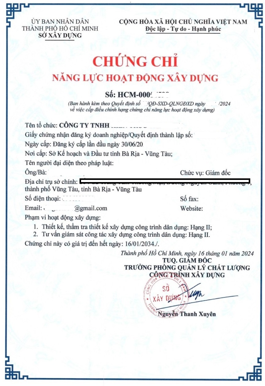 - Sở Xây dựng cấp chứng chỉ hạng II, hạng III.
