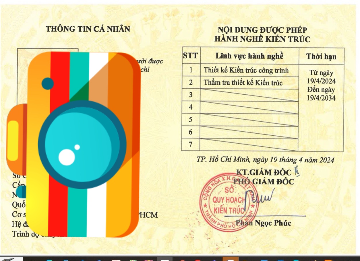 | 1 | Chứng chỉ hành nghề cá nhân | ![]() ![]() | ![]() ![]() |